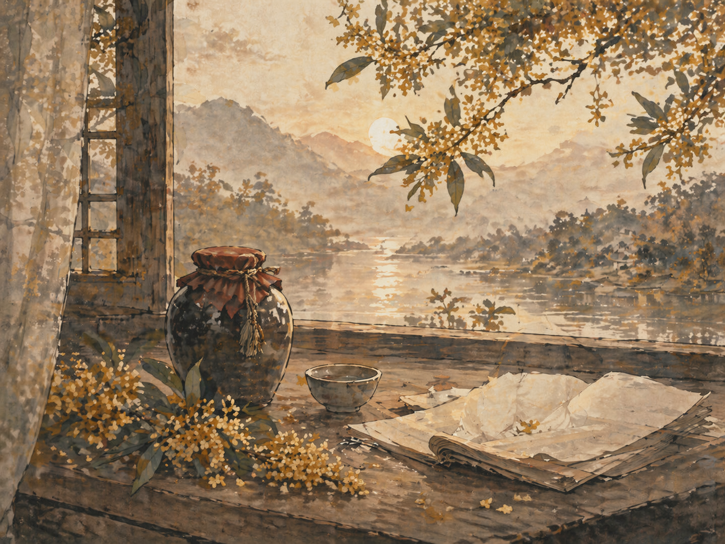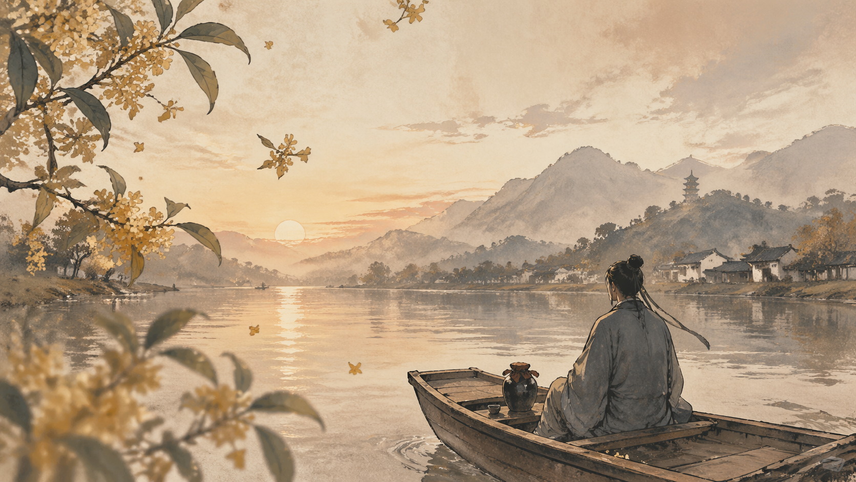 桂花、酒、同游,短短几个字,便把秋天写活了。好像风里有香气,水面有微光,朋友还在身旁,前路也还远,兴致一来,便可以说走就走。那时候的人,总觉得来日方长,重逢不难,连离别都带着一点轻飘飘的意味。